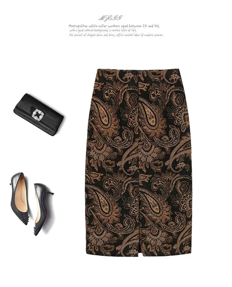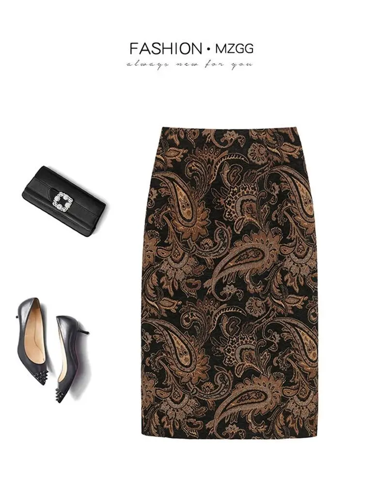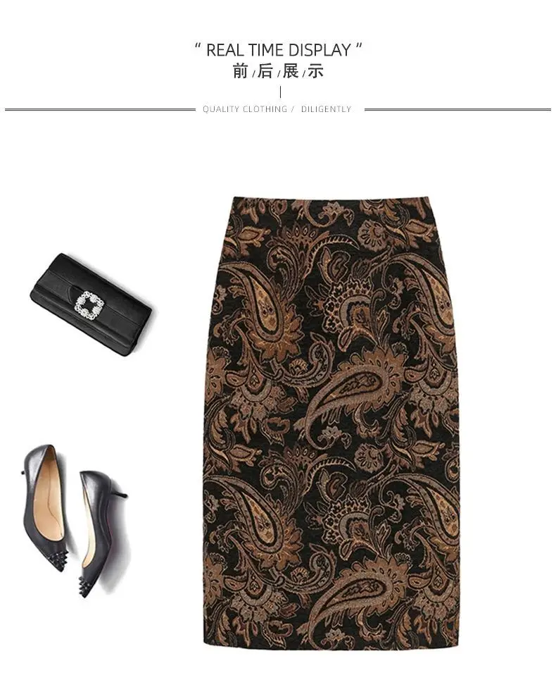 Women’s Spring High Waist Straight Midi Skirt Hip Hugging Floral Elegant Style